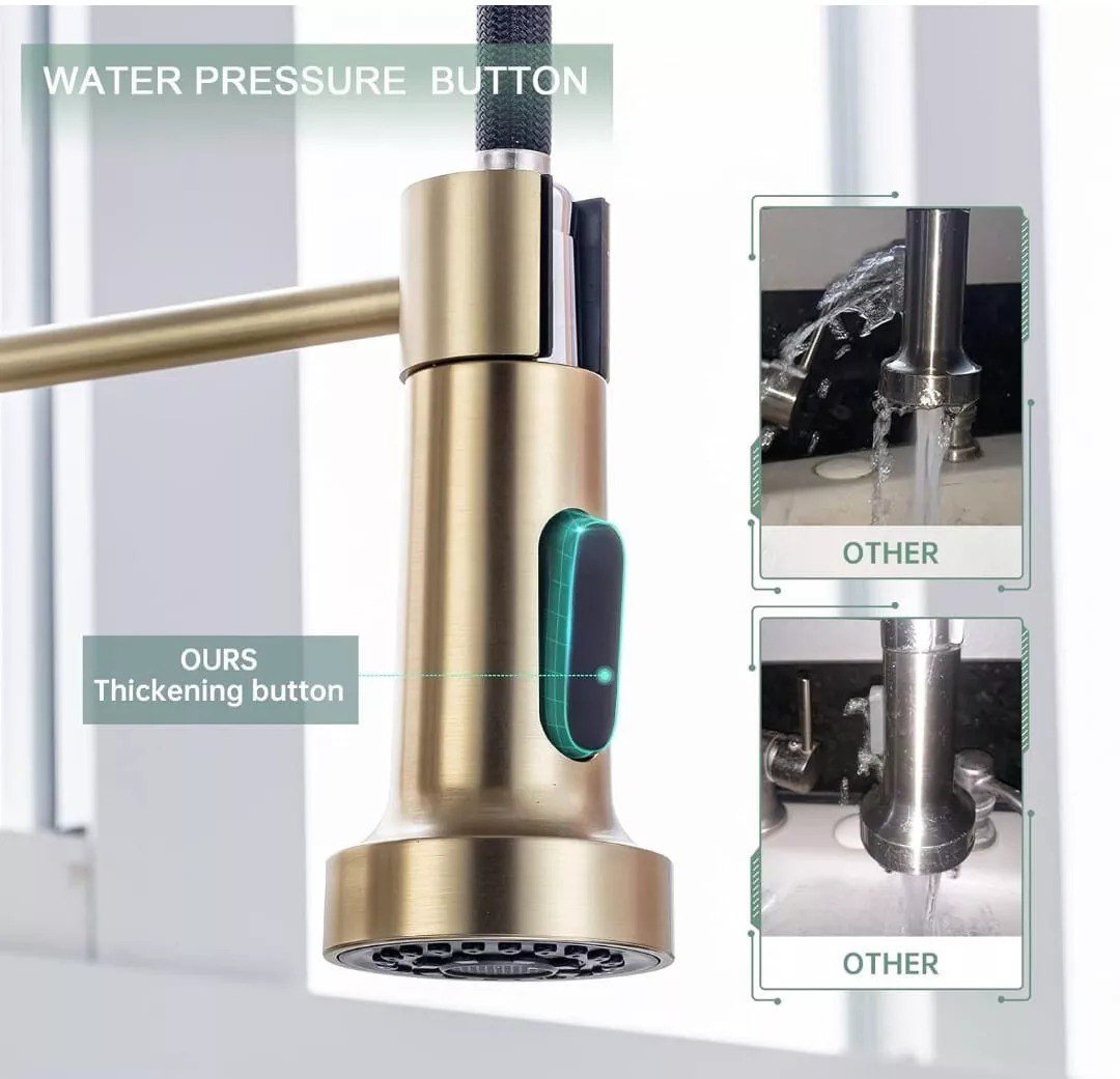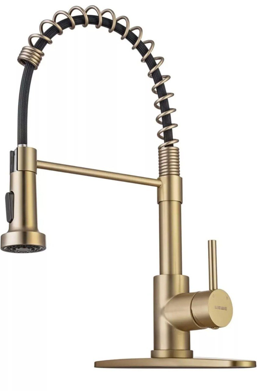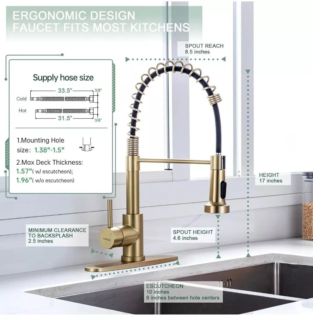 Be the first to review “Hoimpro Brushed Gold High Arc Spring Kitchen Faucet with Pull Down Sprayer”